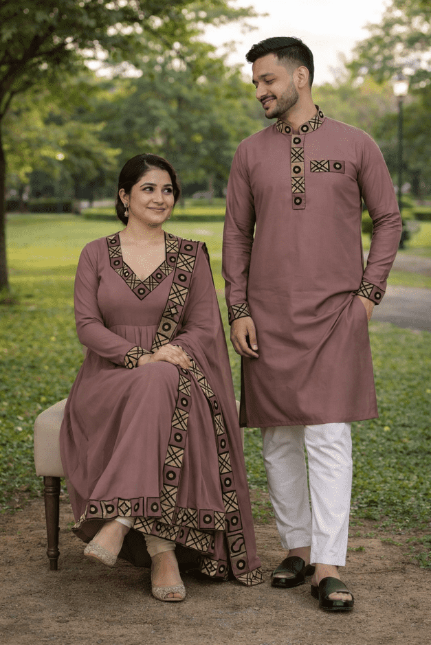 Stylish Coffee Brown Matching Couple Dress Set – Punjabi & Gown (Code: 107)